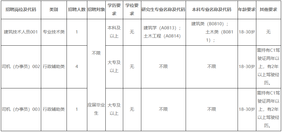3.崗位為司機(辦事員),崗位代碼003,招聘對象為普通高等院校2022年大學(xué)?飘厴I(yè)應(yīng)屆畢業(yè)生。