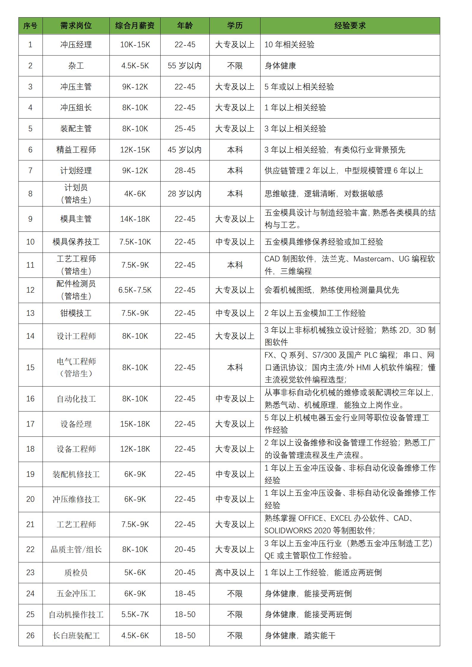 清遠(yuǎn)市星徽精密制造有限公司位于清遠(yuǎn)市龍?zhí)伶?zhèn)銀盞嘉福工業(yè)園?偛渴欠鹕巾樀卤睖虻膹V東星徽精密制造股份有限公司,股票代碼 300464。公司以鋼珠滑軌、鉸鏈等家居五金配件為主導(dǎo)產(chǎn)品,生產(chǎn)的精密金屬連接件廣泛應(yīng)用于多個領(lǐng)域。作為家居五金行業(yè)首家上市公司及滑軌、鉸鏈行業(yè)領(lǐng)導(dǎo)者,為員工提供發(fā)揮平臺和廣闊發(fā)展空間。因業(yè)務(wù)發(fā)展需要,現(xiàn)誠聘以下人員。