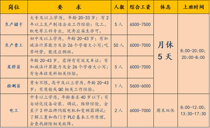3、推薦生產(chǎn)工獎勵:在職員工推薦獎勵1500元/人,社會人員推薦獎勵1000元/人,不限人數(shù);